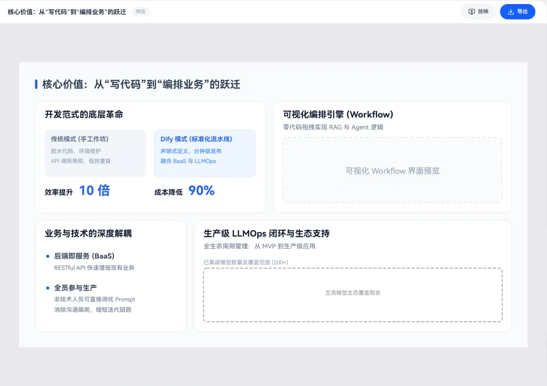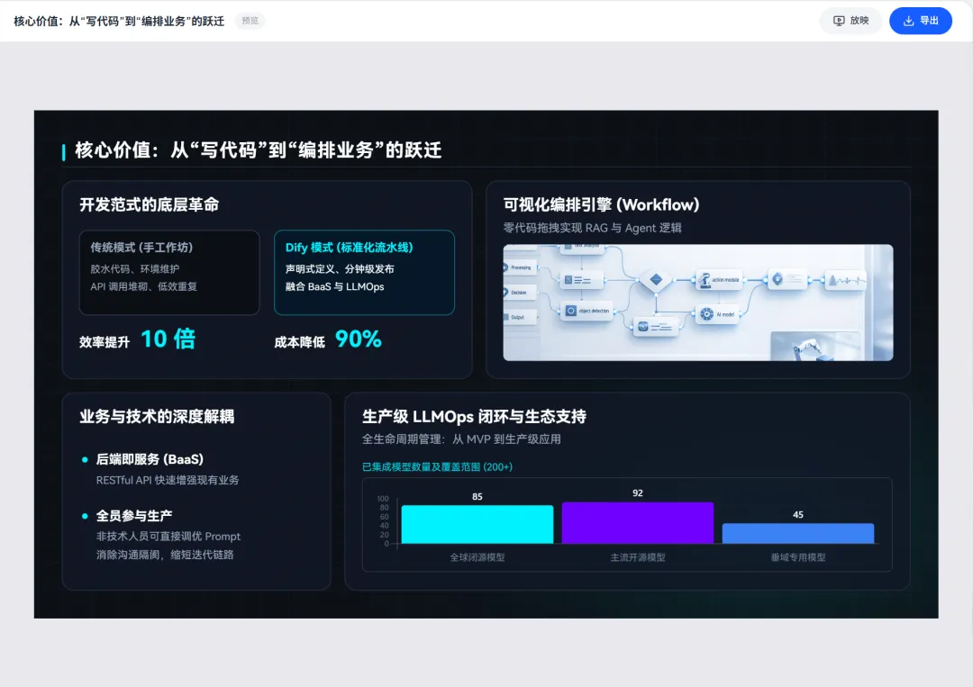 我教了7年PPT,做了3年AI产品,我坚信,AI有能力也已经在改变我们制作和演示信息的方式。这些效果是现在我平衡成本和效果下,能跑出来的极限,但远远不是AI的极限。