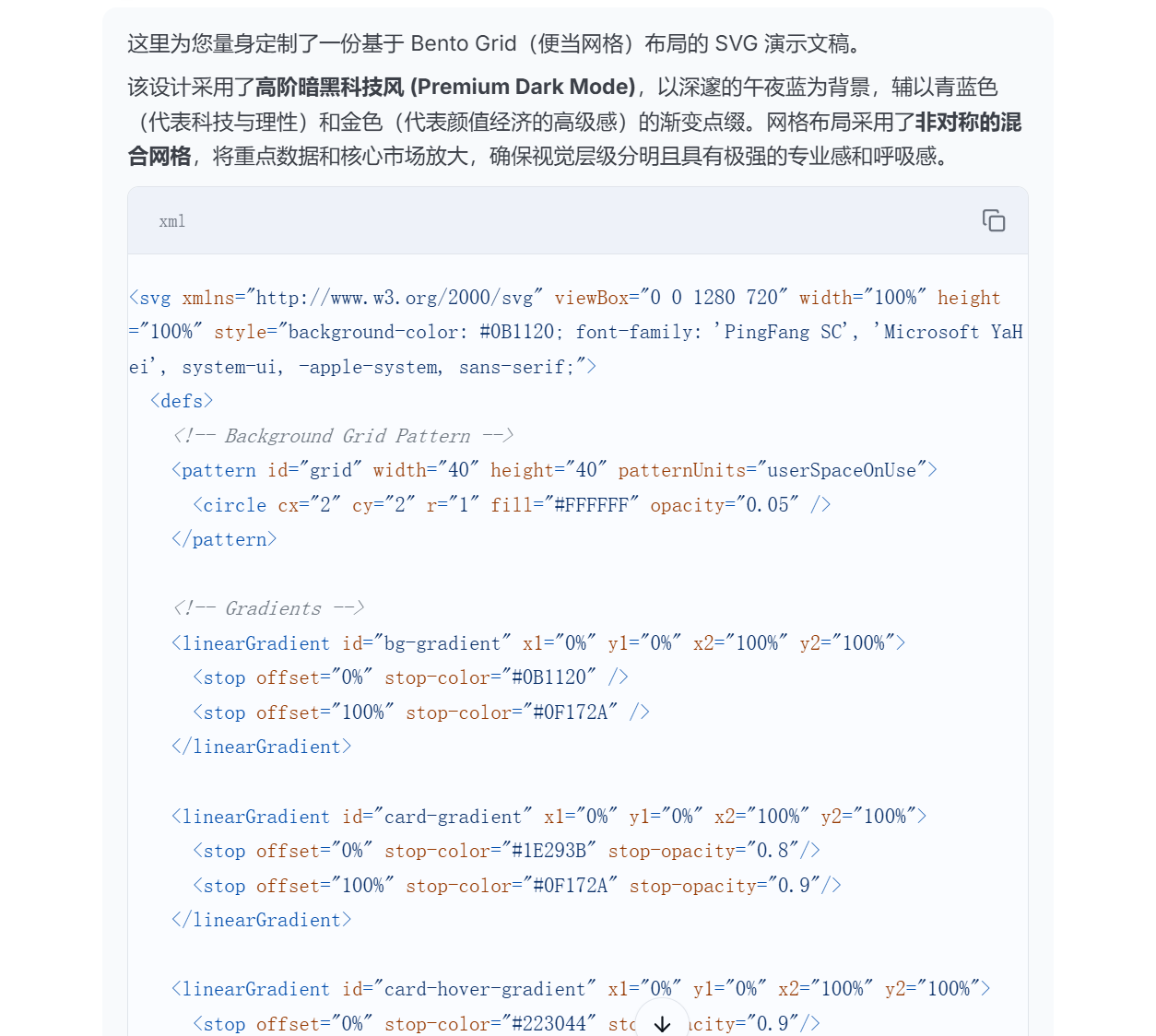 它直接就能生成这样一整个页面的SVG代码了: