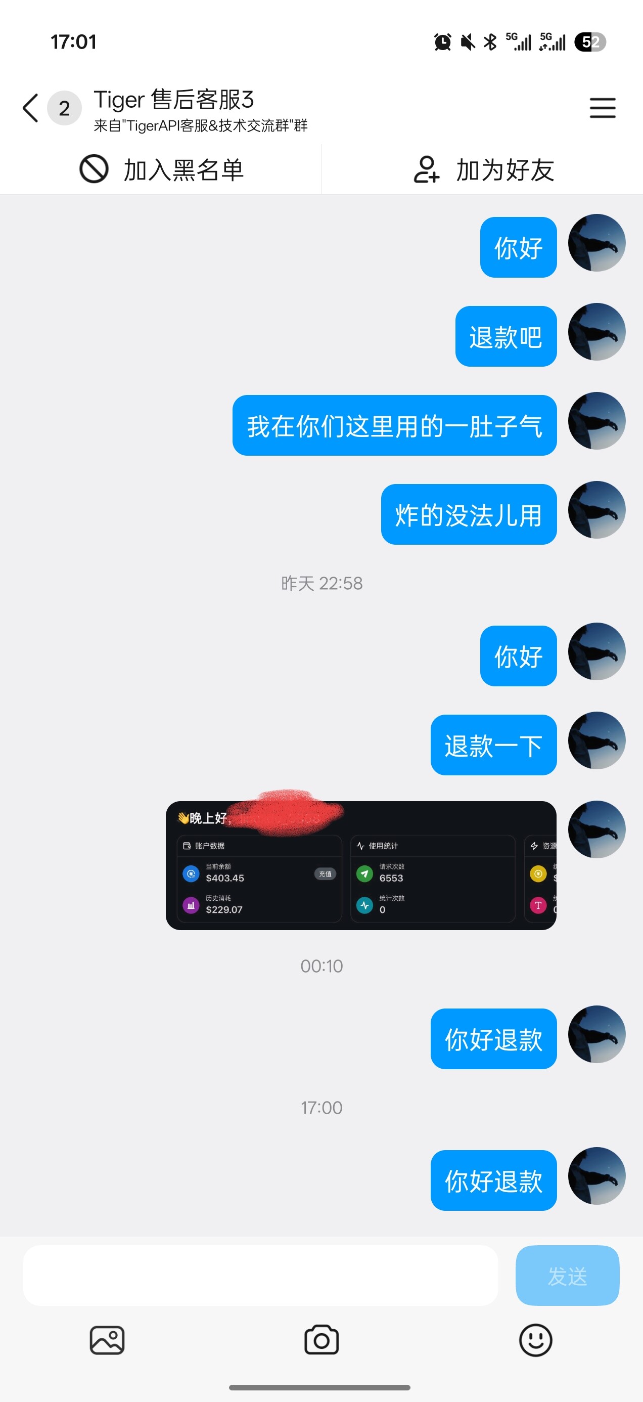 我求求你了虎哥,你退我钱可以吗,我真的球球你了。你们都不理我,我只能来站里倾诉自己的委屈了。