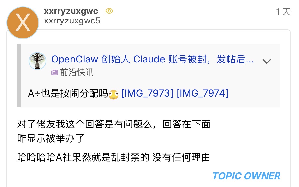 A:我认为管理层对各位佬友而言是个黑盒,举报的审核机制我也不清楚,是一个管理认为有问题就是有问题,还是要多位管理都要认为有问题才是有问题?从删帖的结果来看,我认为 “滥用举报” 已经不仅仅是 “部分群众里的坏人随意举报” 了,不一定是人的问题,也有可能是机制的问题。
