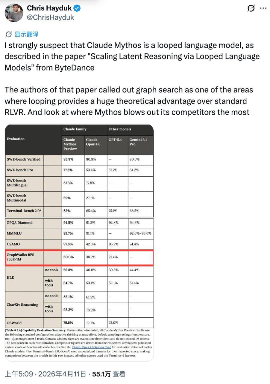 Anthropic 拒绝公开Mythos的模型架构,但一项异常的测试成绩引发了社区猜测。